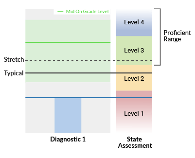 To support Stretch Growth attainment, diagnostic data can help you understand your students’ exact needs. What are their next steps for instruction to put them on a path to proficiency? What can they do so you can celebrate their progress and foster an asset-based mindset?