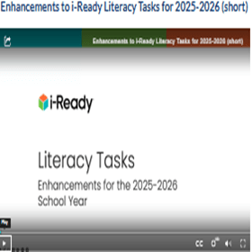 A quick review of the new enhancements coming to i-Ready Literacy Tasks for the 2025–2026 school year. Updates include a new Student Literacy Profile report, Assignment Cart, Assign to Schools, and new ways to find, filter, and sort tasks. This video also briefly covers the updates and redesign of teacher forms and Task Administration Aids, as well as additional forms being added for several task types.